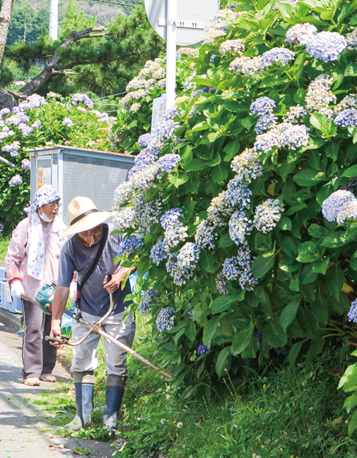 同会は、高部屋地区を中心に環境整備などの活動や地域の活性化を図る団体。アジサイの手入れや散策路の整備などを地元住民の有志らと20年以上前から続けている。