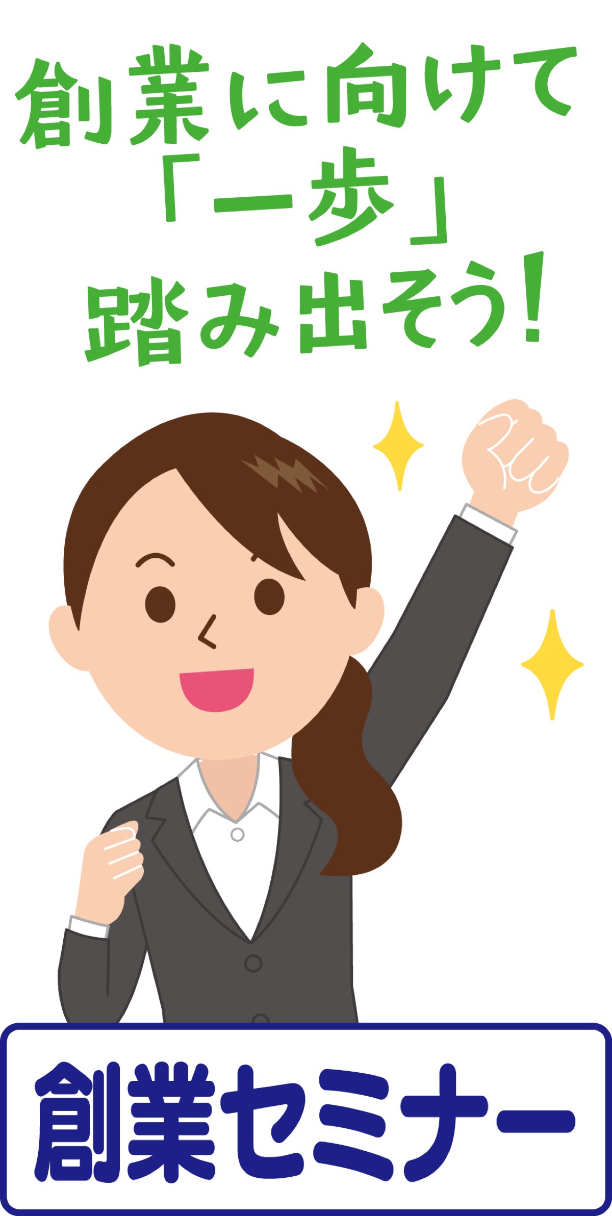 「創業を考えている」や「資格や趣味をいかしたビジネスを始めてみたい」、「開業して間もないので、更に知識を得たい」「経営を学びたい」と考えている人は必聴。創業に向けて「一歩」踏み出そう!