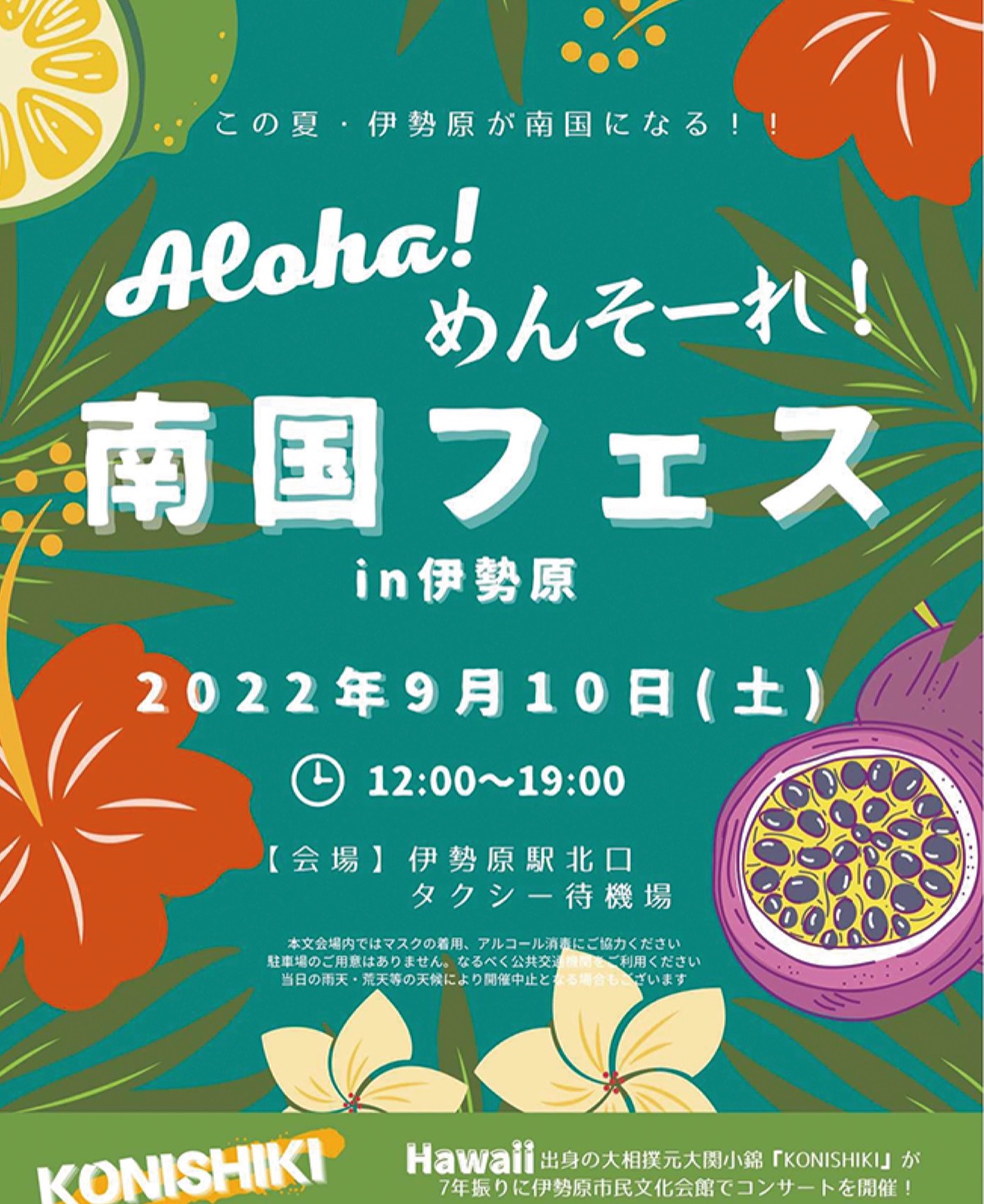 「南国フェスin伊勢原〜Aloha!めんそーれ!この夏・伊勢原が南国になる!!〜」が9月10日(土)、伊勢原駅北口暫定タクシー待機場で開催される。正午から午後7時まで。主催は南国フェス実行委員会。