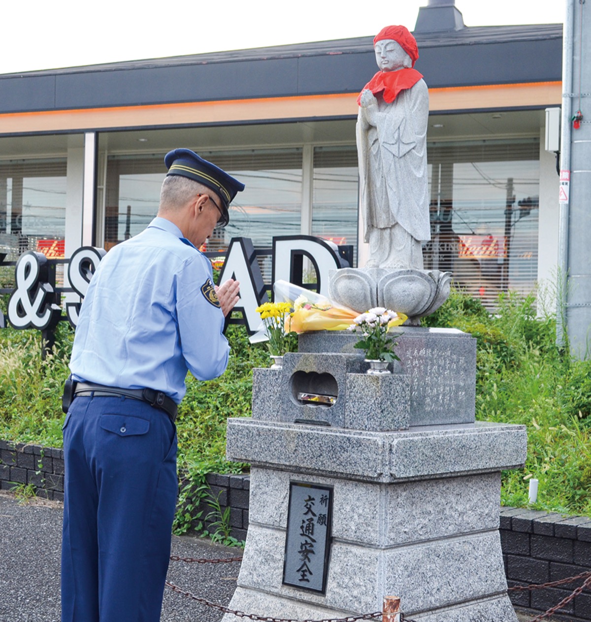 この日は小下署長をはじめ、参列した交通関係団体の代表者たちが、地蔵尊に花を手向け、被害者への鎮魂や交通安全を祈願した。