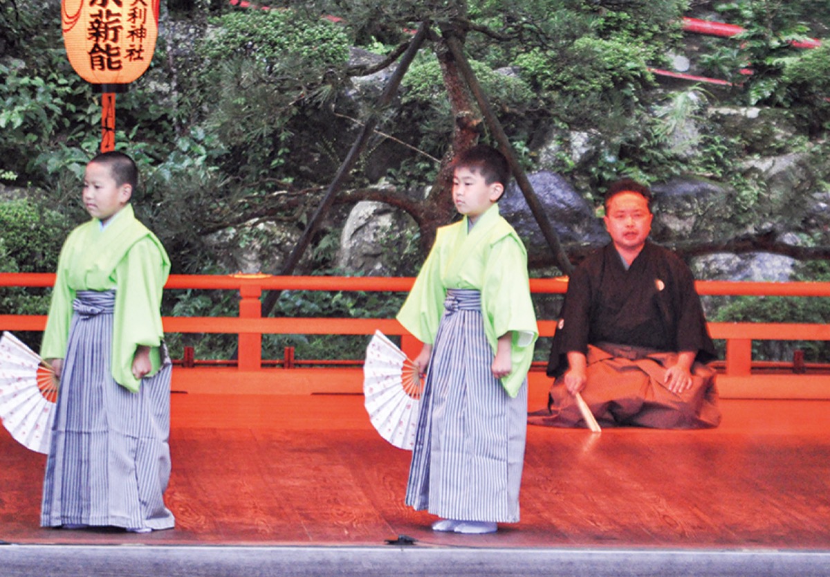 また、大山能の次世代への継承を目的に実施している「大山能狂言親子教室」の参加者らが、約半年にわたる練習の成果を披露、会場から大きな拍手が沸き起こっていた。