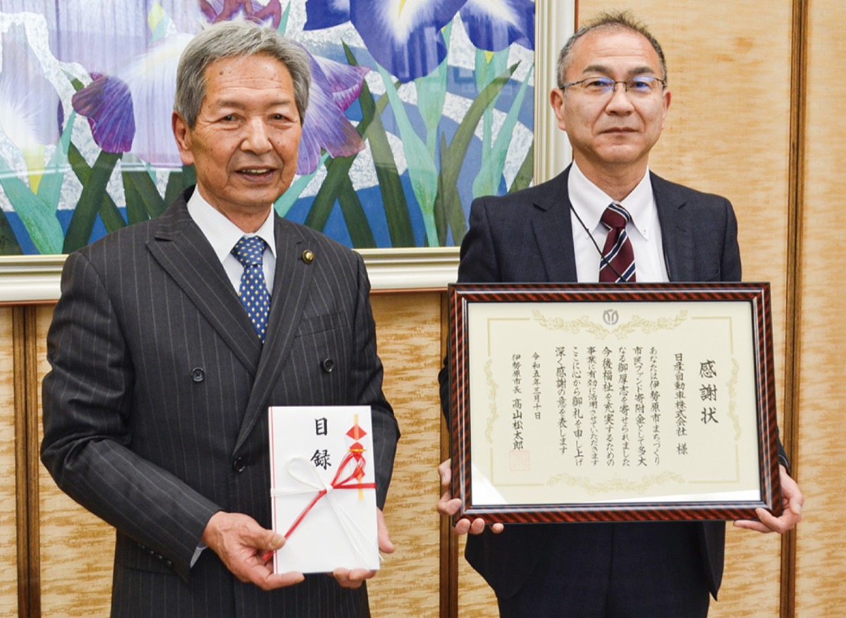まちづくり市民ファンド寄付金は、市が掲げる将来都市像「しあわせ創造都市いせはら」の実現に向けて、市民や企業などから特定の事業の実施に必要な資金の一部を募り、市のまちづくりを応援してもらおうというもの。永澤氏は「有効に使って頂ければ」とあいさつした。市財政課によれば、同社の寄付は今回5回目で総額で50万円。寄付金は福祉関連の事業に活用されるという。
