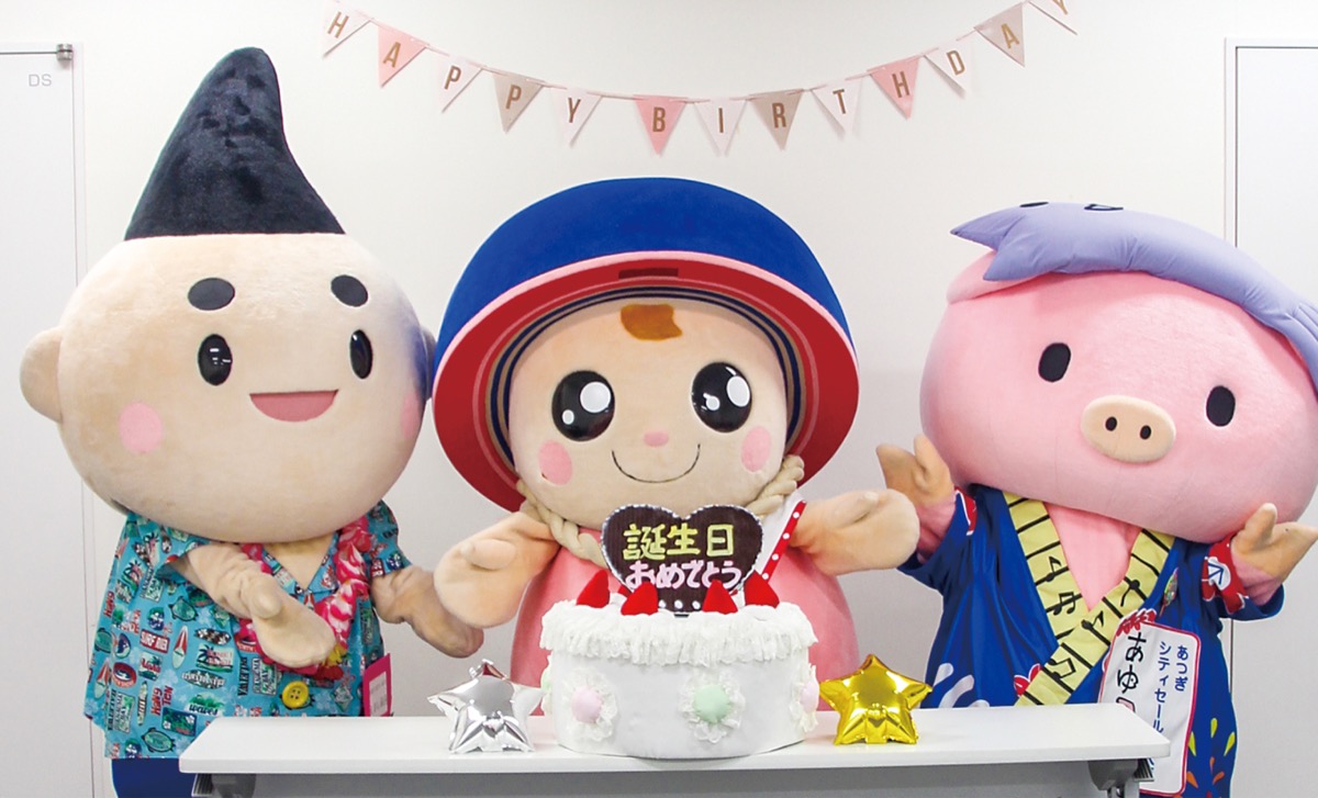 誕生日には茅ヶ崎市特別観光大使のえぼし麻呂や厚木市マスコットキャラクターのあゆコロちゃんも祝いに駆け付けてくれた。