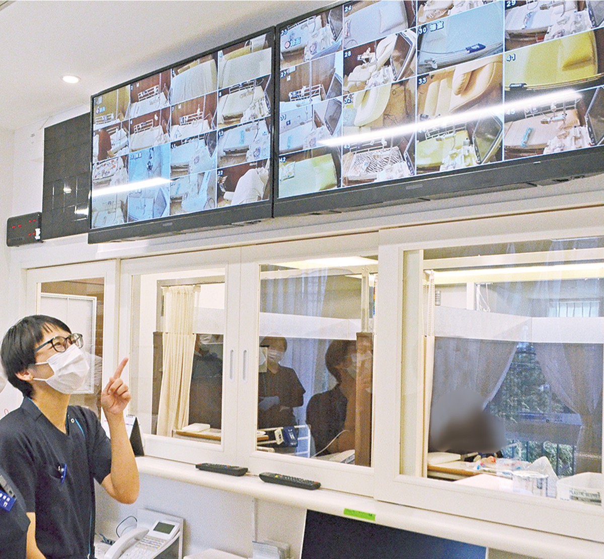 また同院は、全室個室を基本とした透析スペースを用意しているため、治療中の経過は全ベッドに導入されたモニターで確認できる。「小型カメラのため気にされない患者様が多いです。モニターでは画像をはじめ、血圧や脈拍などのデータを常時、看護師が見守っています。画像はスタッフ以外は閲覧できないようになっているので、安心して下さい」と同院。