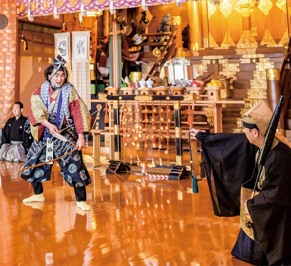 大山阿夫利神社(目黒仁宮司)・下社拝殿で5月5日 、江戸時代から続く伝統芸能のひとつ『大山神事能』が3年ぶりに開催された。