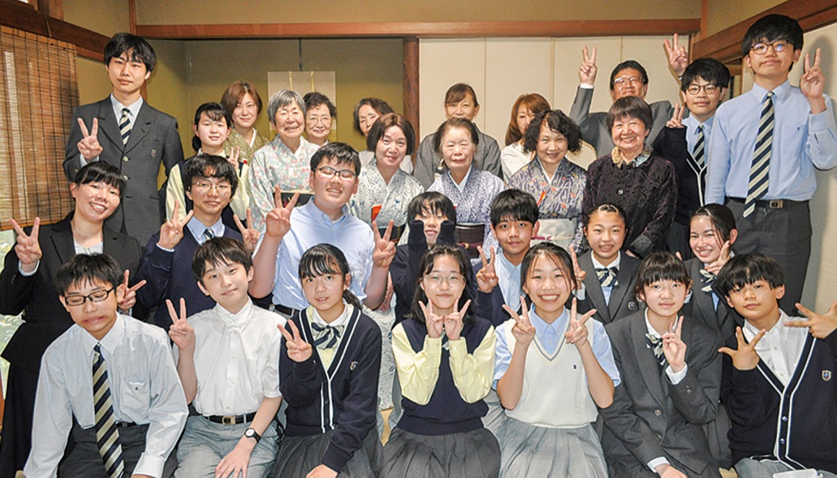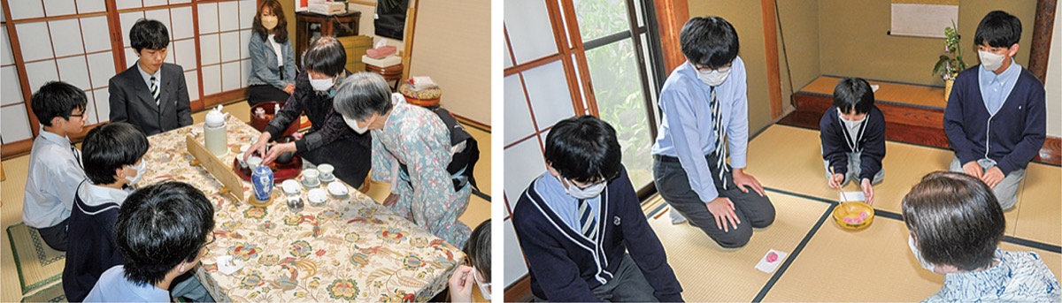 自修館中等教育学校の生徒16人が5月13日、市内石田の大門ひろ子さん宅で、茶道などの日本の伝統文化を学ぶ体験教室に参加した。大門さんは、煎茶道黄檗弘風流家元総師範、茶道裏千家教授でもある。