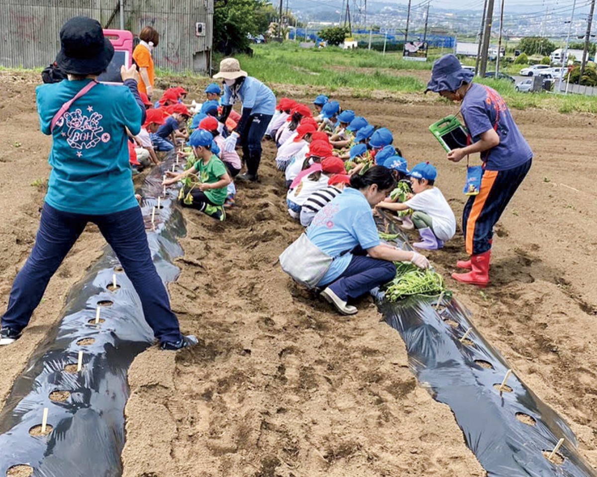 「未来にはばたくこどもたちの心とからだを大きく育てる」という目標を掲げる同園では、日頃から食育の大切さを子どもたちに伝えようと様々な活動を行っており、今回の作業もその一環。