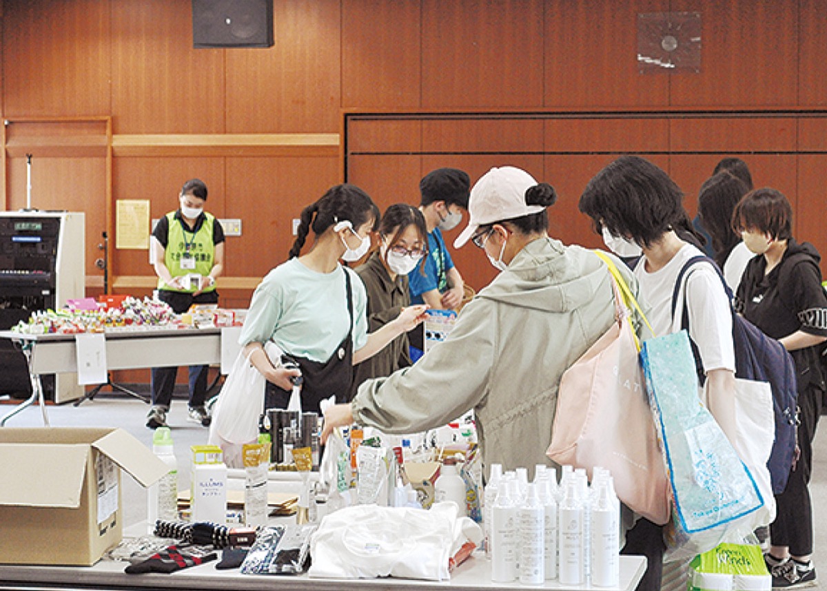伊勢原シティプラザで6月17日、「大学生生活応援配分会」が開催され、85人の大学生が参加した。これは伊勢原市社会福祉協議会(佐伯妙有会長)が、市内在住のひとり暮らしの大学生を応援するため、食料品などを無料で配るもの。