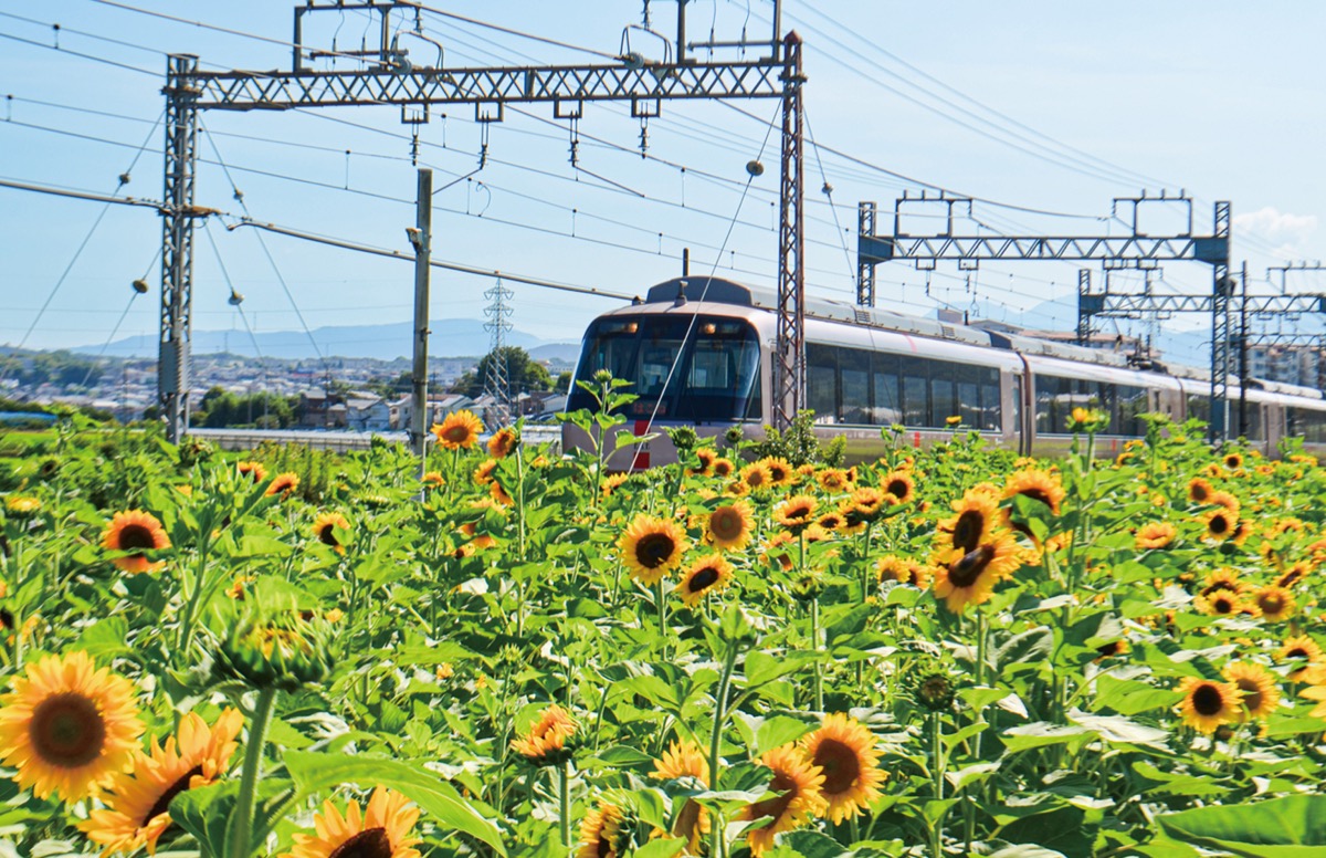 市内串橋地区、妙蔵寺南側の小田急線沿いの畑で大輪のヒマワリが今年も開花した=写真。
