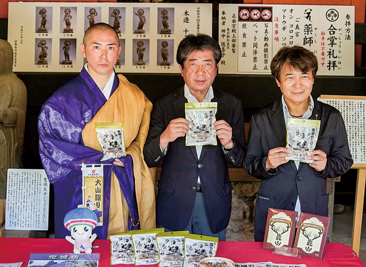 伊勢原うまいもの遺産創造委員会(柏木貞俊会長)が新商品「伊勢原 日向 薬師のど飴」を発売。7月26日に日向薬師(内藤京介住職)で発表会を行った。