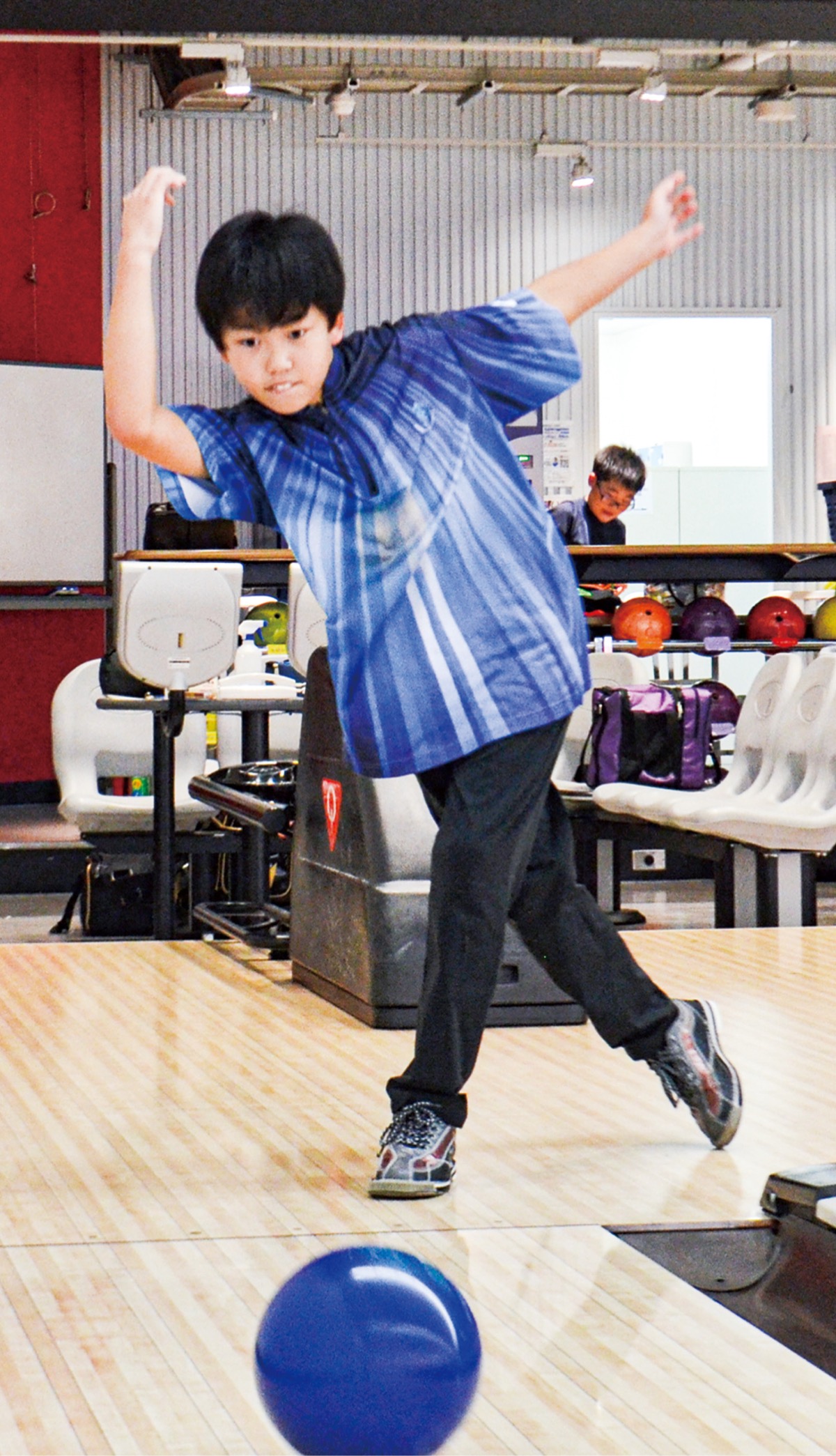 友人の勧めで小学校1年の時から同センターの教室に通う井上君。「ボールを回転させて曲げるのが面白い」。2年生になってマイボールを持ったころからボウリングがさらに楽しくなったという。現在は週に3〜4日、プロやコーチから指導を受け、1日90分、多い時は6ゲーム投げる日もある。