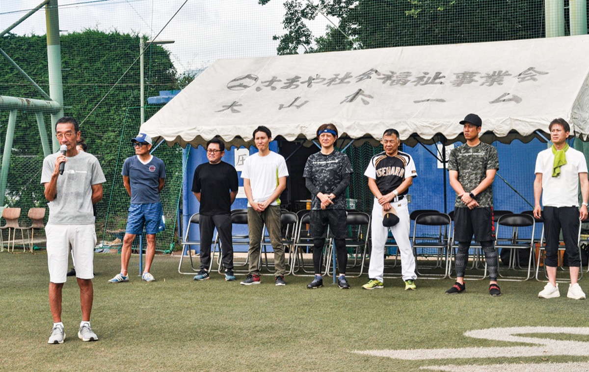 当日は市内の少年野球チーム所属の選手をはじめ、指導者や保護者、クラブ会員など約100人がグラウンドに集結。開会式で須藤会長は関係者らに感謝を述べ「暑いですが、しっかり体調管理しながら頑張ってもらいたい」と選手らにエールを送った。萩原委員長は「違う学校で学びながら野球を愛する選手が同じフィールドで力を合わせて試合をしていく。皆さんの友情を育むきっかけになれば」と語った。