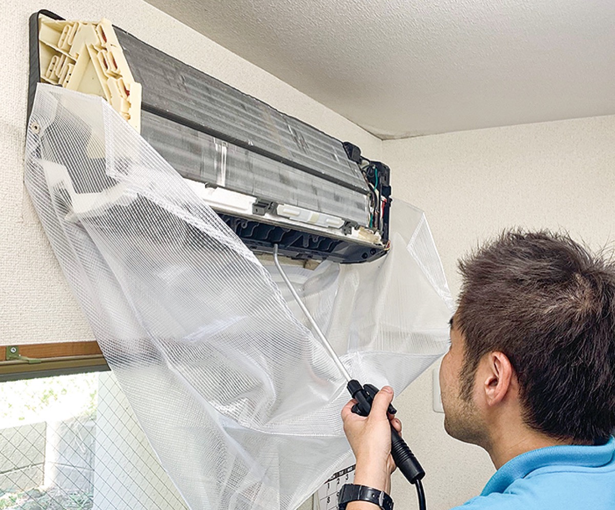 洗浄時間は90分。「定期的なエアコンクリーニングは、電気代節約にもつながります」とは同社の弁。カビやしつこい汚れはプロによる分解洗浄でピカピカに。