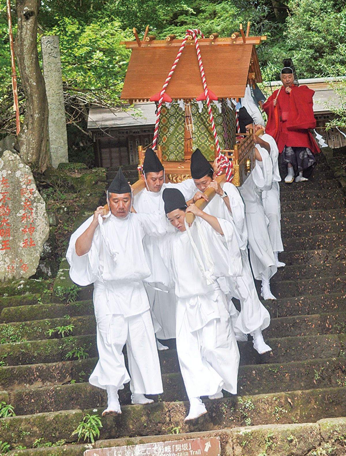 翌28日には、秋季例大祭の神事が執り行われ、「倭舞」と「巫女舞」も奉奏された。神事を終えた目黒宮司は「この秋季大祭は権田翁の発議により誕生した。一山総出のお下りを無事に終え、大祭が執行できたのも多くの方たちのお力添えの賜」と関係者らに感謝を述べた。最終日の29日には同社行在所から下社まで神輿を担いでのぼる「お上り」が行われ、行事が締めくくられた。
