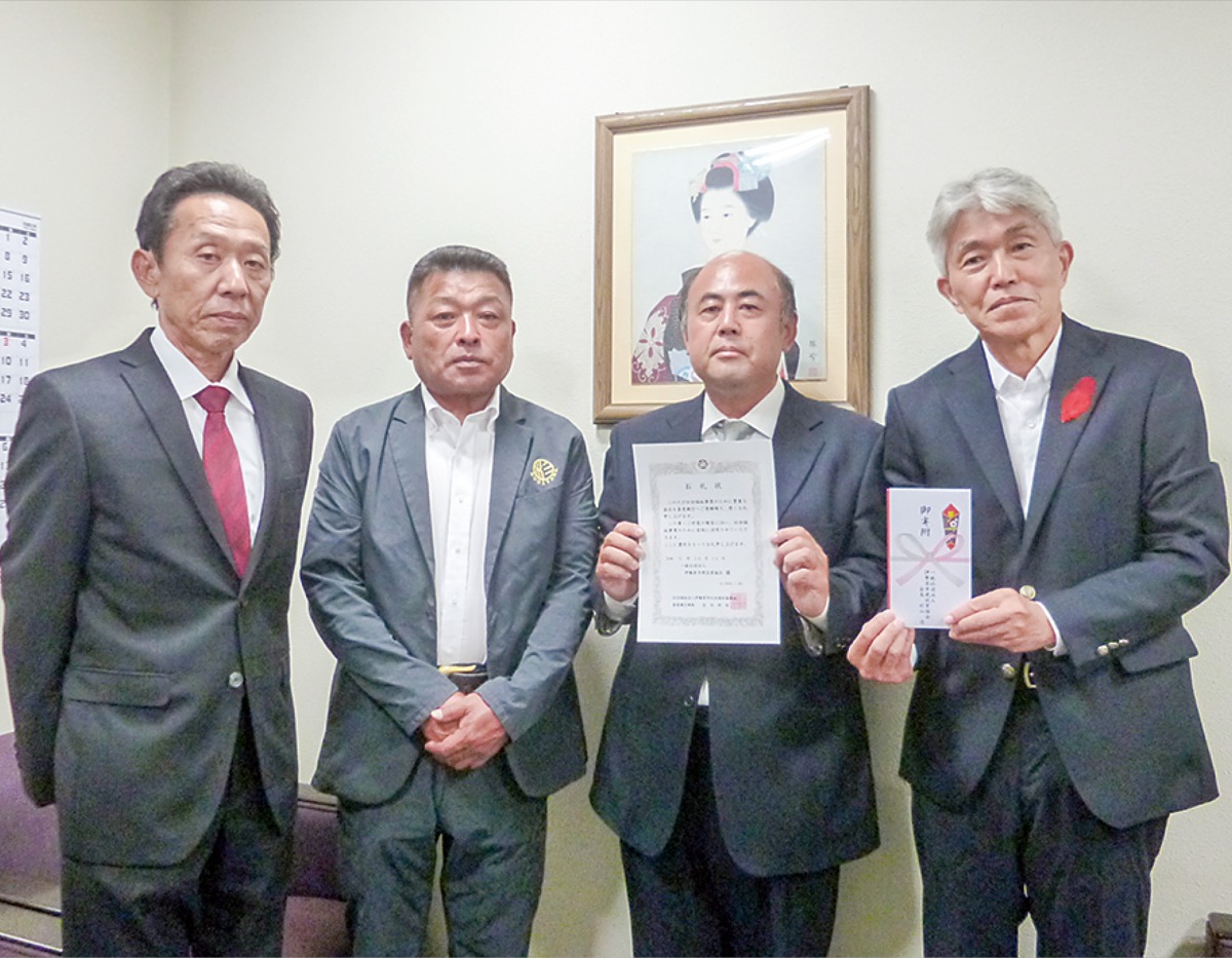 社団法人伊勢原市建設業協会の杉山進会長、渡辺徹副会長、同青年委員会の山崎信吾委員長が10月12日、(社福)伊勢原市社会福祉協議会(佐伯妙有会長)を訪問し、同協議会の善意銀行に6万円を寄付した。