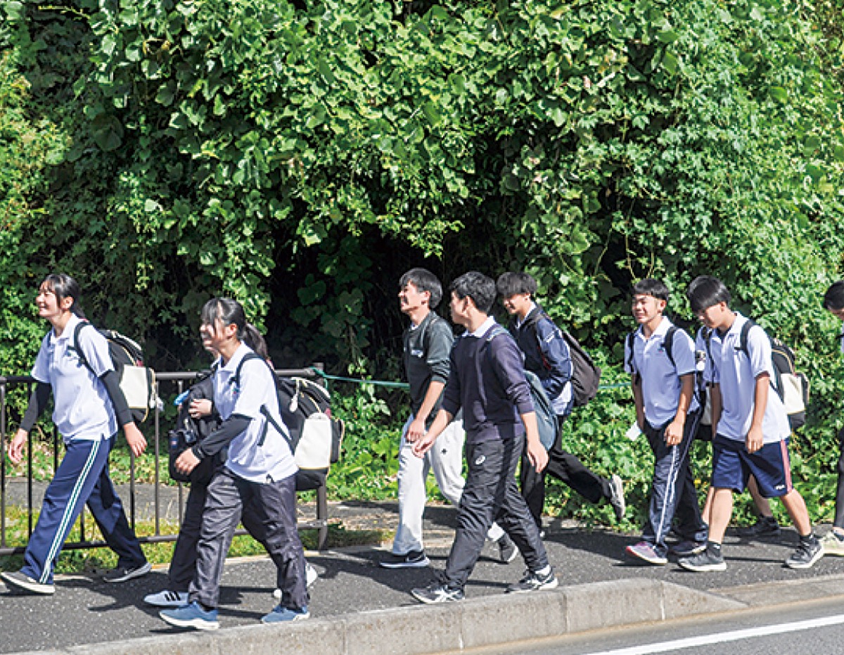 県立伊志田高校(岡野正之校長)の生徒らが10月23日、「Ishida Field Trip(IFT)」と題したウォーキングイベントを初開催。参加した約200人の生徒や教職員ら全員が約30Kmの距離を歩き抜いた。