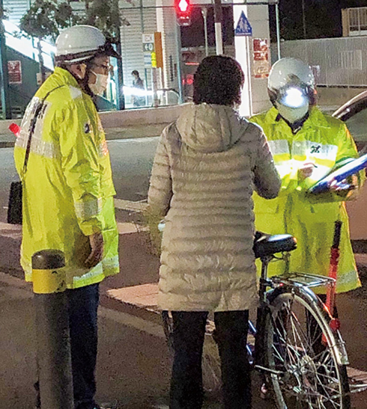 夜の交差点で安全訴え