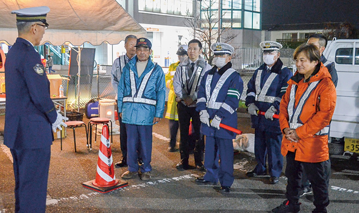 この日はまず伊勢原警察署の小下光一署長が「市内で大変事故が多くなってくる。交差点は特に事故が多いのでしっかりと見守り、監視してほしい。一人一人の行動が大切になってくる」とあいさつ。高山松太郎伊勢原市長が激励に訪れる中、警察官が無灯火の自転車の運転手に警告や注意喚起をしたほか、交通団体の参加者らは横断歩道で歩行者の誘導などを行った。