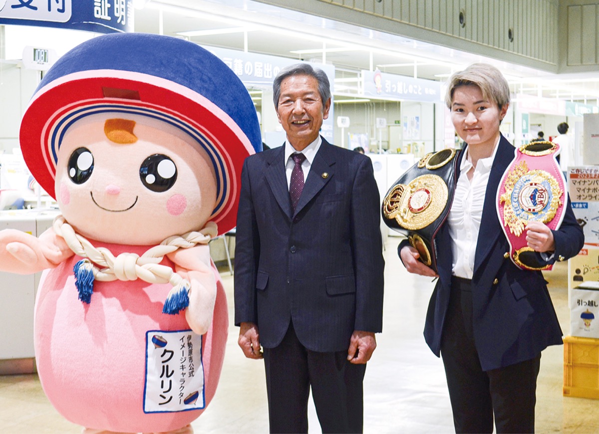 市内板戸出身のプロボクサー・松田恵里選手(29)がこのほど行われたWBA・WBO世界女子アトム級タイトルマッチで勝利し、2団体統一世界王者となった。2月15日に高山松太郎市長を表敬訪問、結果を報告した。