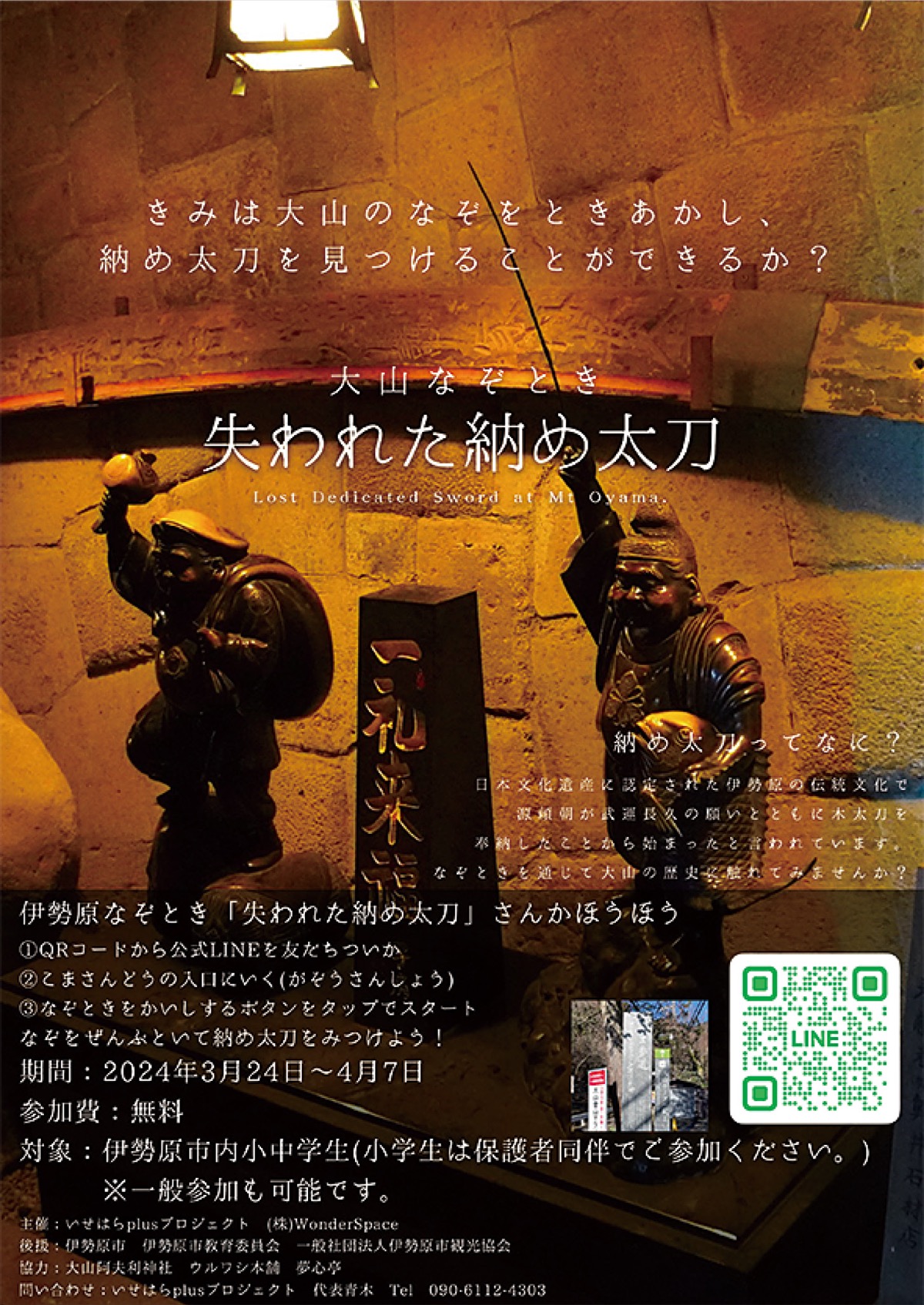 いせはらPlusプロジェクト(青木孝幸代表)と(株)Wonder Space(山本尚宏代表取締役)が3月24日(日)から4月7日(日)まで、市内小中学生・親子(小学生は保護者同伴・一般参加も可)を対象に、LINE謎解きイベント「失われた納め太刀」を初開催する。参加無料。