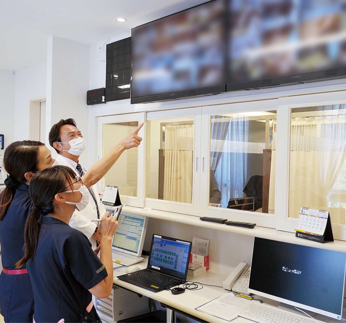 国道246号線沿い、下糟屋交差点にある「湘英クリニック伊勢原医院」(田中克巳理事長)では、顔認証システムによる個人情報の認識や、治療中の安全を確保するため全ベッドにカメラを導入するなど、新たな設備を取りそろえる。
