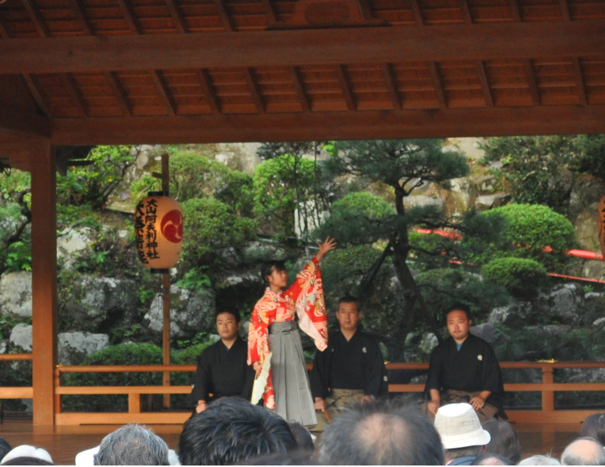 会場では火祭神事、火入れ式などが阿夫利の峰々に響き渡る太鼓の音ともに厳かに執り行われ、仕舞「道灌」、「邯鄲」、「玉鬘」、狂言「呼声」や「柿山伏」、能「井筒」、「融」などが演じられた。来場者は秋深まる大山で、幽玄の世界を堪能していた。