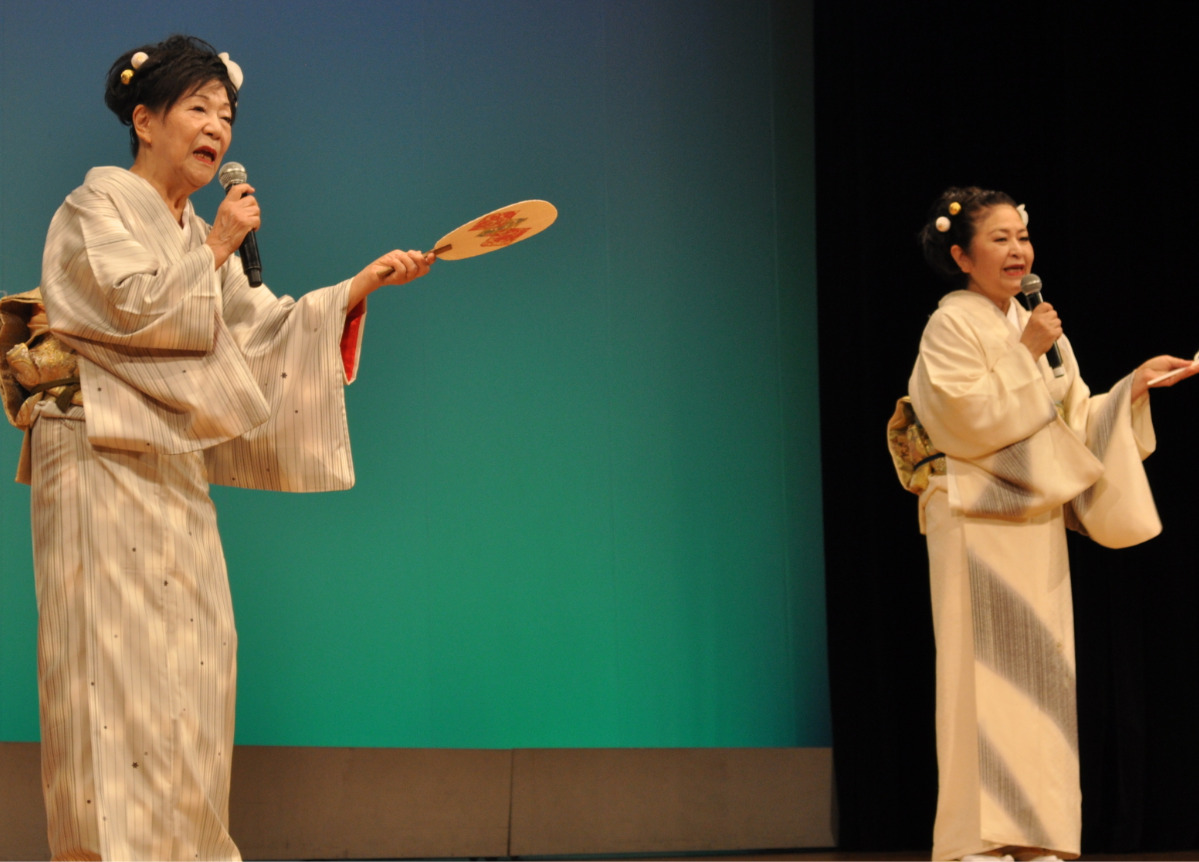 当日は、夢乃会メンバーをはじめ、テイチクエンタテインメントの半田浩二さんや美貴じゅん子さん、創作舞踊家の五條流・五條詠寿郎さん、作曲家の宮下健治さん、岩井流文鳳会の岩井文鳳会主らの踊りや歌が来場者を魅了した。