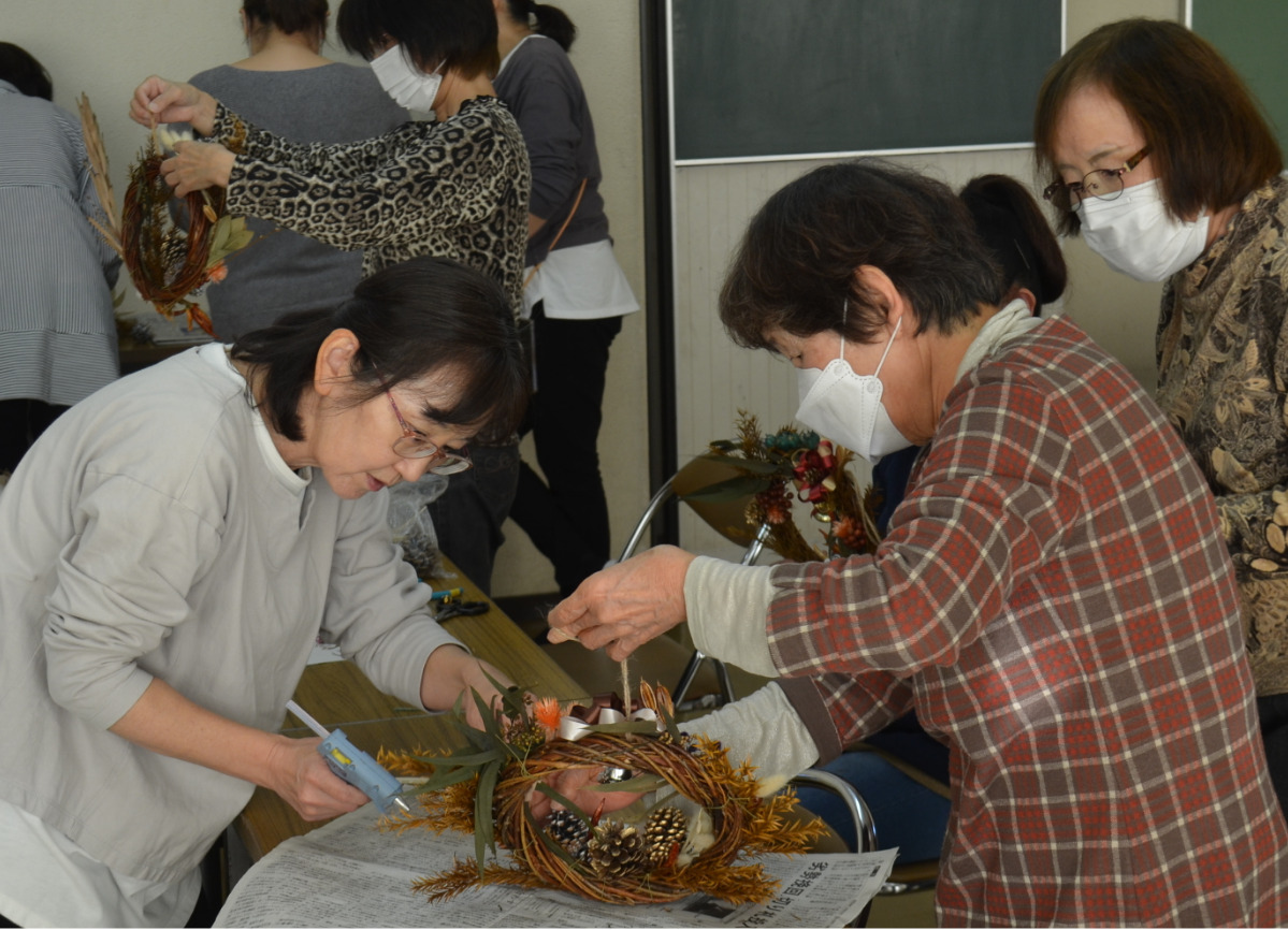 比々多公民館で11月22日、クリスマスリース作り教室が行われた。