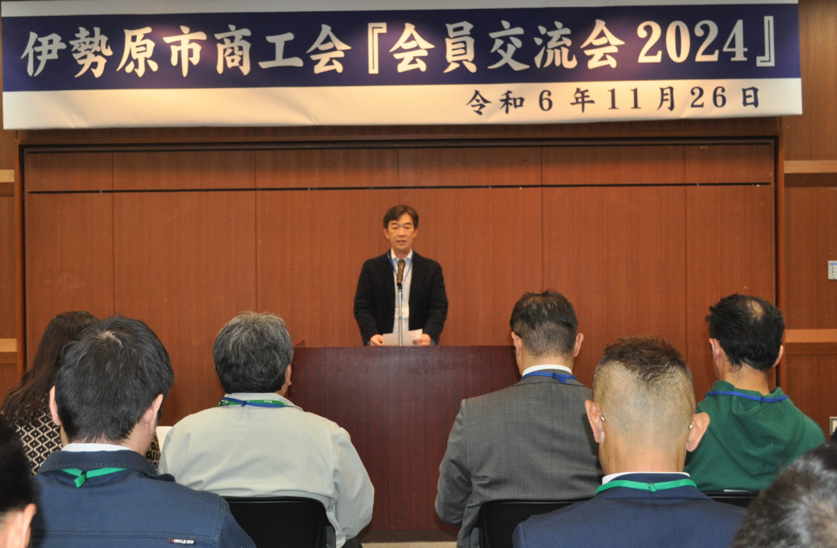 伊勢原シティプラザ1階ふれあいホールで11月26日、伊勢原市商工会(高橋宏昌会長)主催の「会員交流会2024」が開催され、約80人が参加した。
