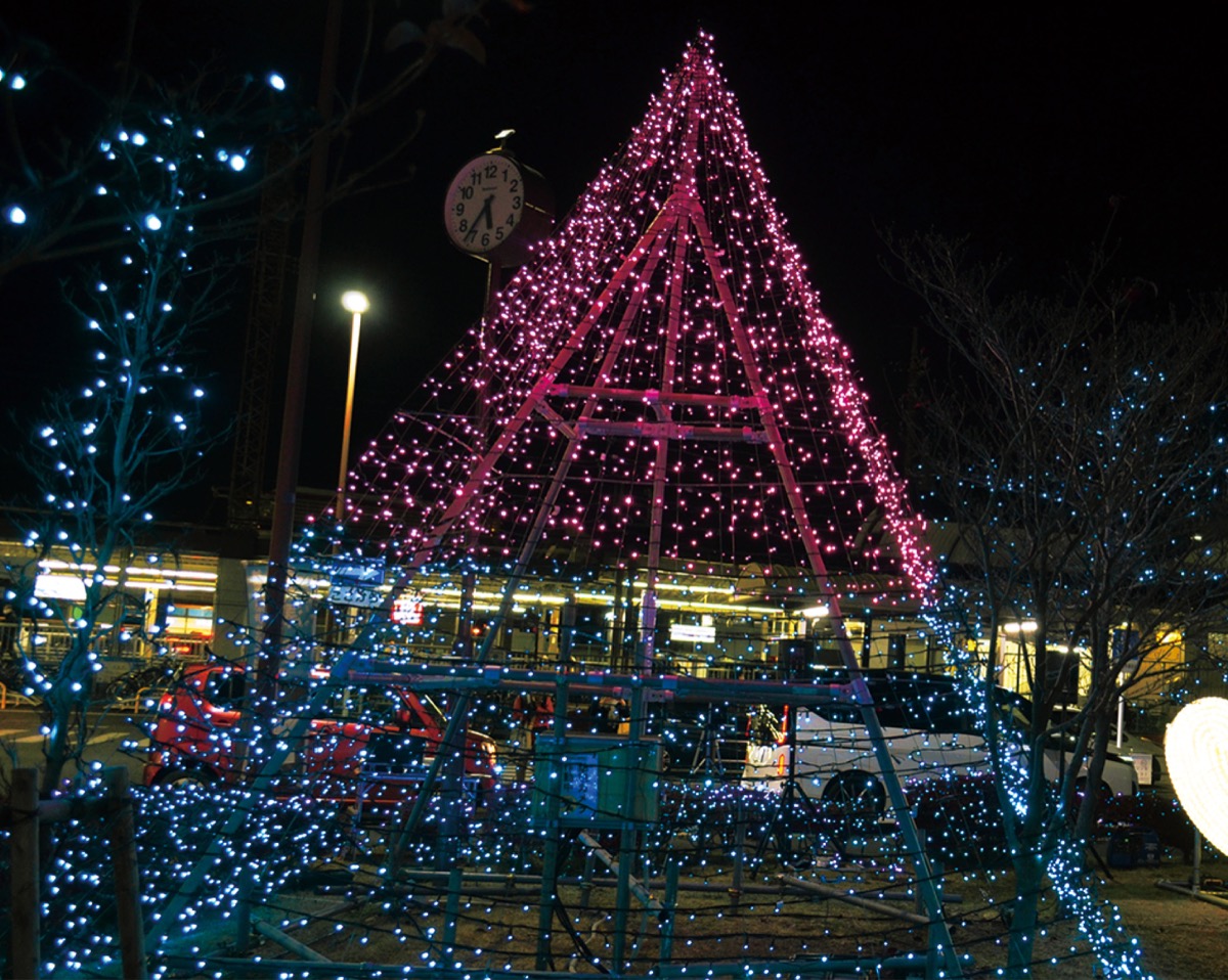 「まちの中心より地域の皆様へ灯りと温もりを届ける」をコンセプトに、コロナ禍で沈んだ人々の心を明るくしようと2020年から行われ、今年で5回目を迎えた。イルミネーションには1万球のLED電球が使われている。
