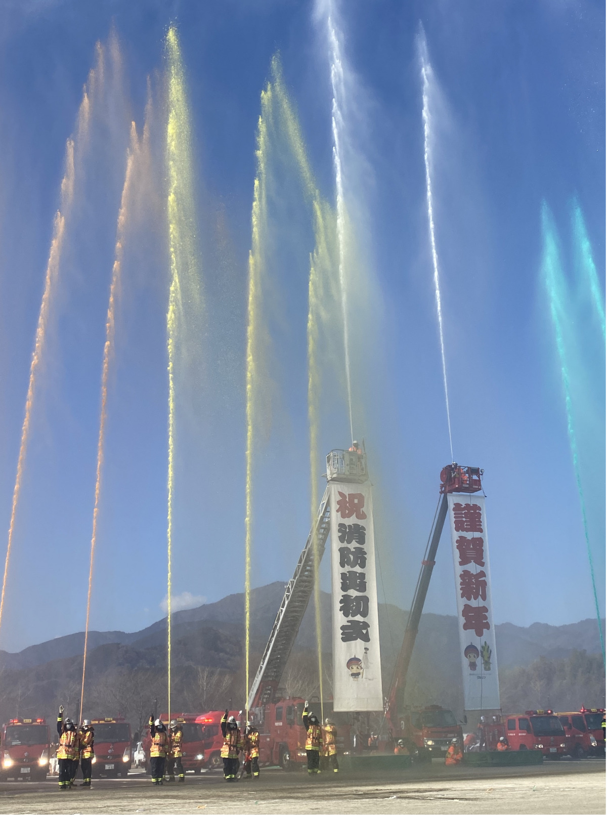今年は元日の能登半島地震で石川県に甚大な被害が発生したため一斉放水を無色にし、規模縮小での開催となっていた。