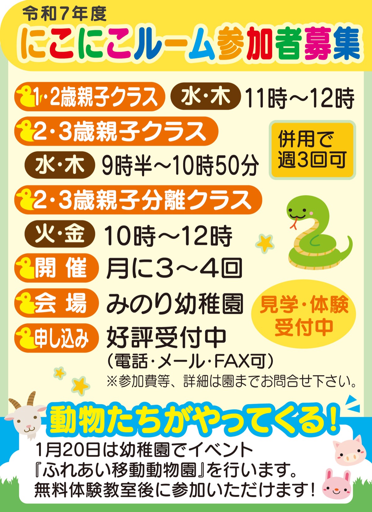 認定こども園・伊勢原みのり幼稚園では、1月20日(月)に未就園児教室『にこにこルーム』の《無料体験教室》を開催する(要予約)。