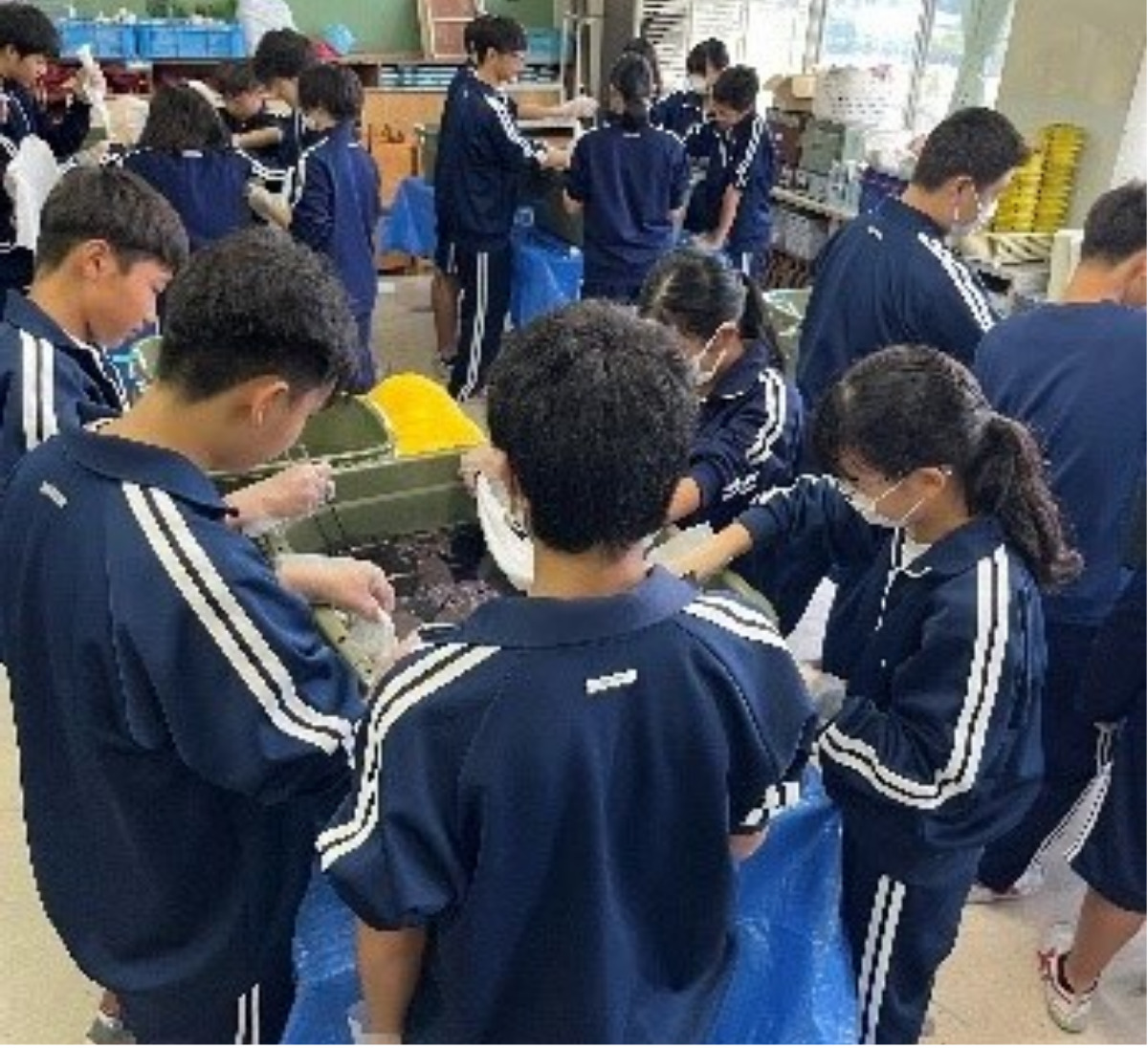 同中学校2年生が美術の授業の一環として、市内在住の藍師である小沼慶多さんを講師に迎えて昨年10月に藍染めを体験、染め上がった作品を一斉に展示する。「個性豊かな模様や様々な藍色を楽しみながら、藍の美しさ、繊細さ、奥深さを感じてみませんか」と同校。