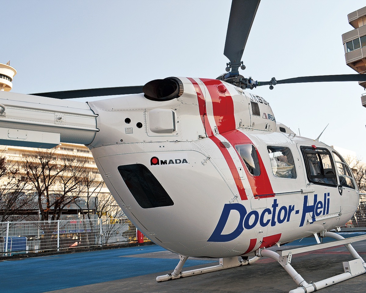 同院によると、ドクターヘリを運行する費用の財源は、主に国から都道府県を通じて交付される補助金で年間約2億4千万円。そのほとんどが運行費で消費してしまい、装備品の更新や駐機場の維持管理などの費用は同院が負担してきた。今回の協賛は、この事業を持続可能な方法で維持していくための財源として、同院から地元企業である(株)アマダに協賛を呼びかけ実現した。