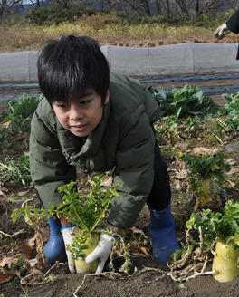 青柳会長の講義の後に畑に移動し、収穫作業を開始。寒風が吹く中、1本1本慎重に抜き取っていった。参加者は「楽しかった」「思ったより小さくて残念」などと話していた。