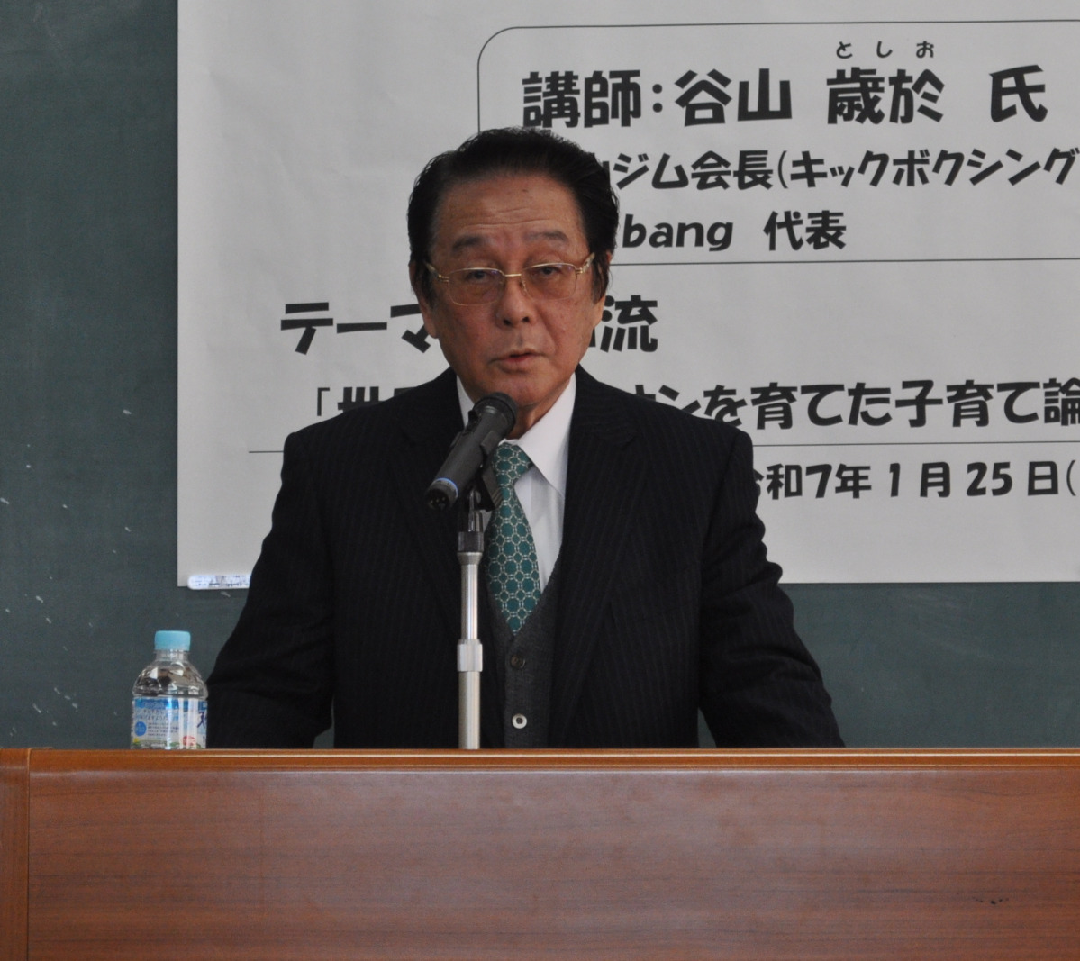 講師には多種多様な子どもたちと向き合い、青少年の健全育成に貢献してきたキックボクシングの谷山ジム会長でBigbang代表の谷山歳於氏を迎え、子どもたちにどのように情熱をもって接するかをテーマに講演を行った。谷山氏は格闘技界の発展に努めるとともに、自身の息子である俊樹氏を初代Bigbangスーパーライト級やWKA&WBKFなど世界四冠チャンピオンに育て上げた。