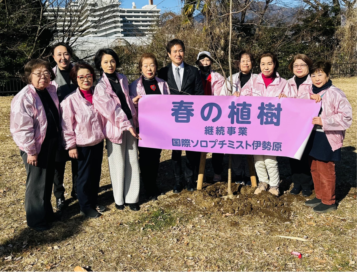 奉仕団体、国際ソロプチミスト伊勢原(亀井鍈子会長)が2月13日、市内下糟屋の丸山城址公園でしだれ桜の記念植樹を実施。伊勢原市からは感謝状が贈られた。