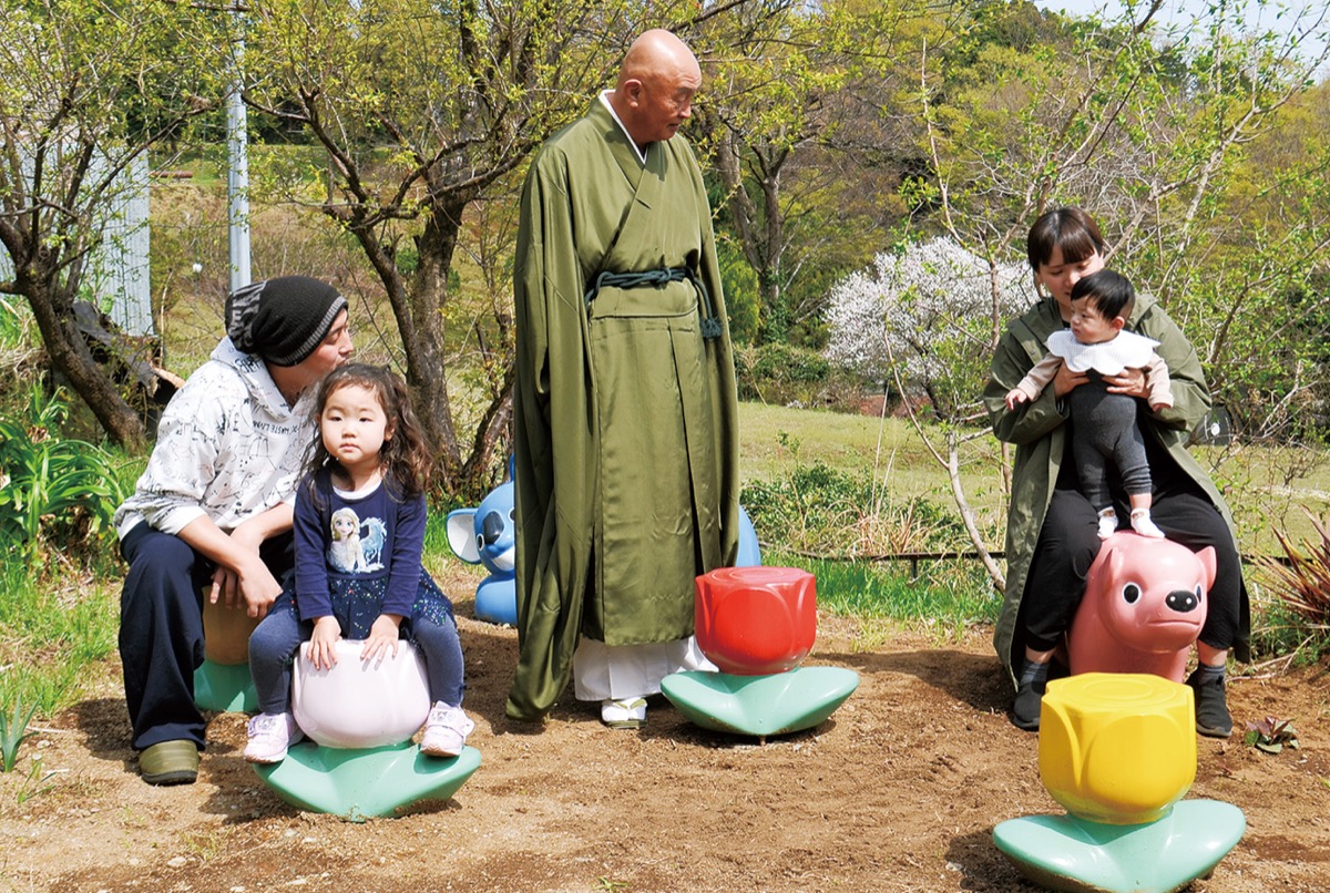 市内坪ノ内にある大乗山養国院(宇都宮昌徳住職)の境内の一角に、幼児用の遊具がお目見えした。これは、宇都宮住職が理事長を務めていた相模原市の中和田幼稚園(齋藤淑子園長)が3月31日で閉園となったことから移転したもの。