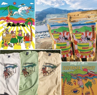 幼少期から絵が好きで、水彩やアクリル画に加え、デザイン専門学校ではデジタル画を学んだというYUCANVASさん。伊勢原市内で働くようになり、居酒屋のPOPやTシャツのデザインを頼まれたことをきっかけに、5〜6年ほど前からイラストの依頼が舞い込むように。最近では、大山ホームによる大山天然温泉「伊勢原大山の湯」の入浴剤パッケージは、YUCANVASさんのイラストが大きくフィーチャーされた注目のアイテム。独創性とポップで意外性のある配色センスが、「新しい感じもするがどこか親しみやすいタッチ。且つクラシカルな雰囲気の元気が出るイラスト」と、評価を受けている。「伊勢原の方々は皆さん良い人ばかり、良くしてもらっている」と感謝を語る。