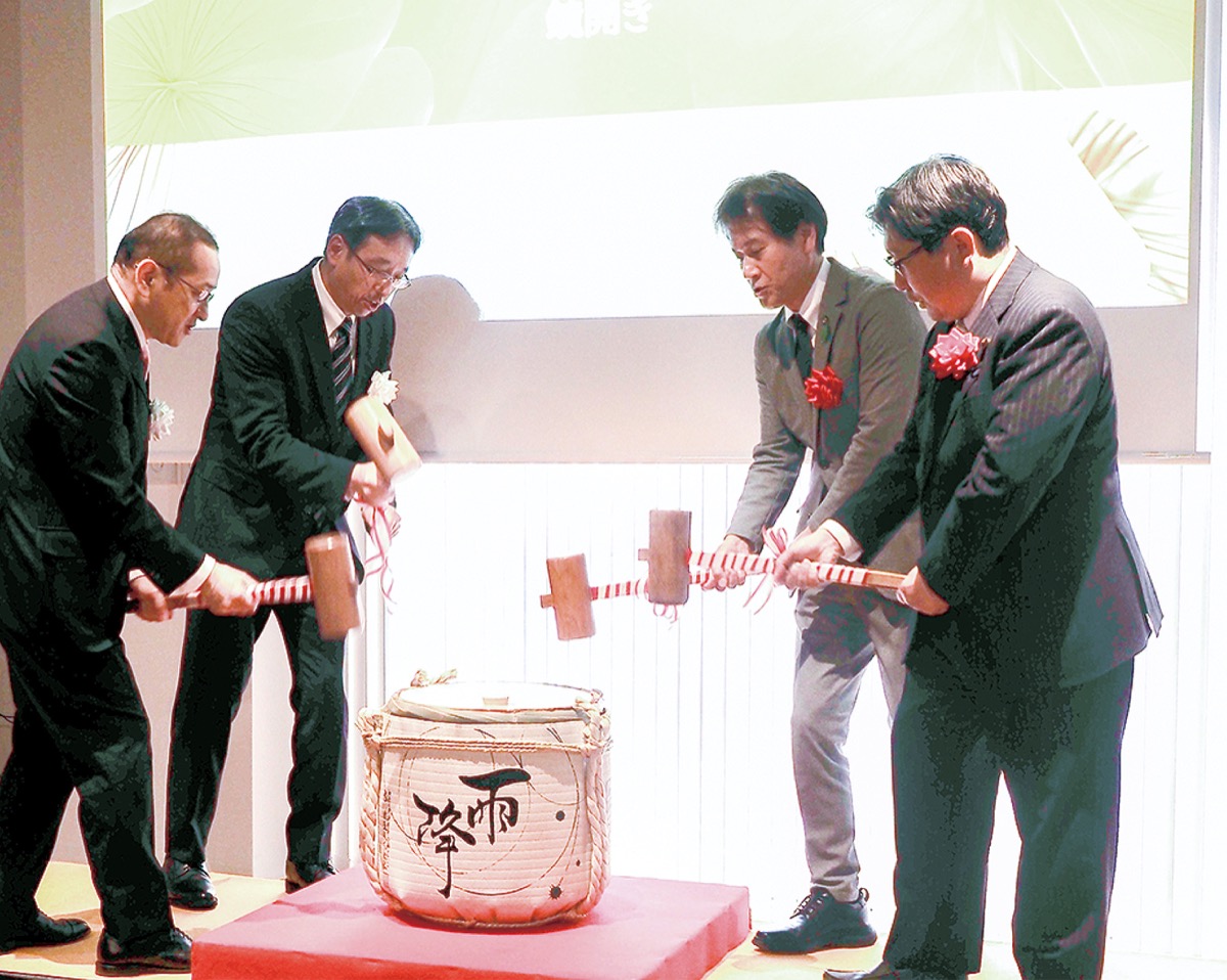 プライフーズ(株)代表取締役社長・本吉陽一氏は、「大山を中心とした豊かな自然と多くの歴史、文化にご支援を頂きながら事業を拡大してまいりました。食の未来に新たな価値を創造することが使命です」とあいさつした。祝賀会では、萩原鉄也伊勢原市長らが新社屋の完成を祝い、今後の発展に期待を寄せた。