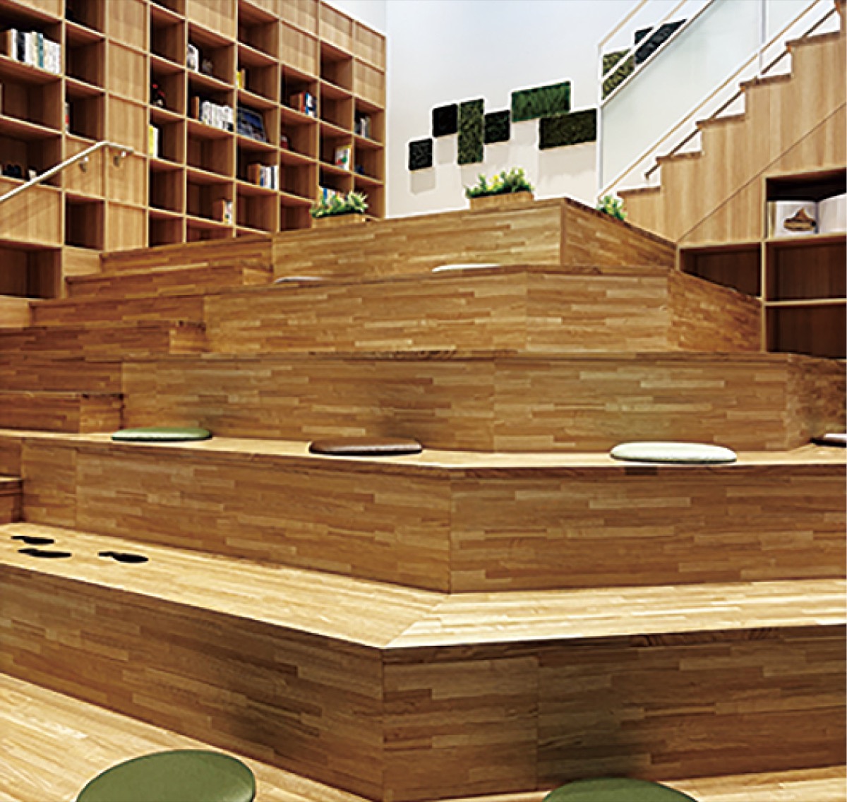 「3つの縁(知の縁、心の縁、人の縁)」を具現化したオフィス空間は、コミュニケーションやリフレッシュスペースを拡充し、開放的なワークスペースを創出し、ライブラリーなども備える。人材採用や社内イベントにも活用していくという。