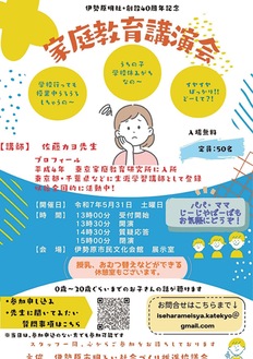 伊勢原市明るい社会づくり推進協議会による家庭教育講座「家庭教育講演会」が5月31日(土)、伊勢原市民文化会館で開催される。午後1時開場、午後1時30分開演。入場無料、当日参加も可能。定員50人。