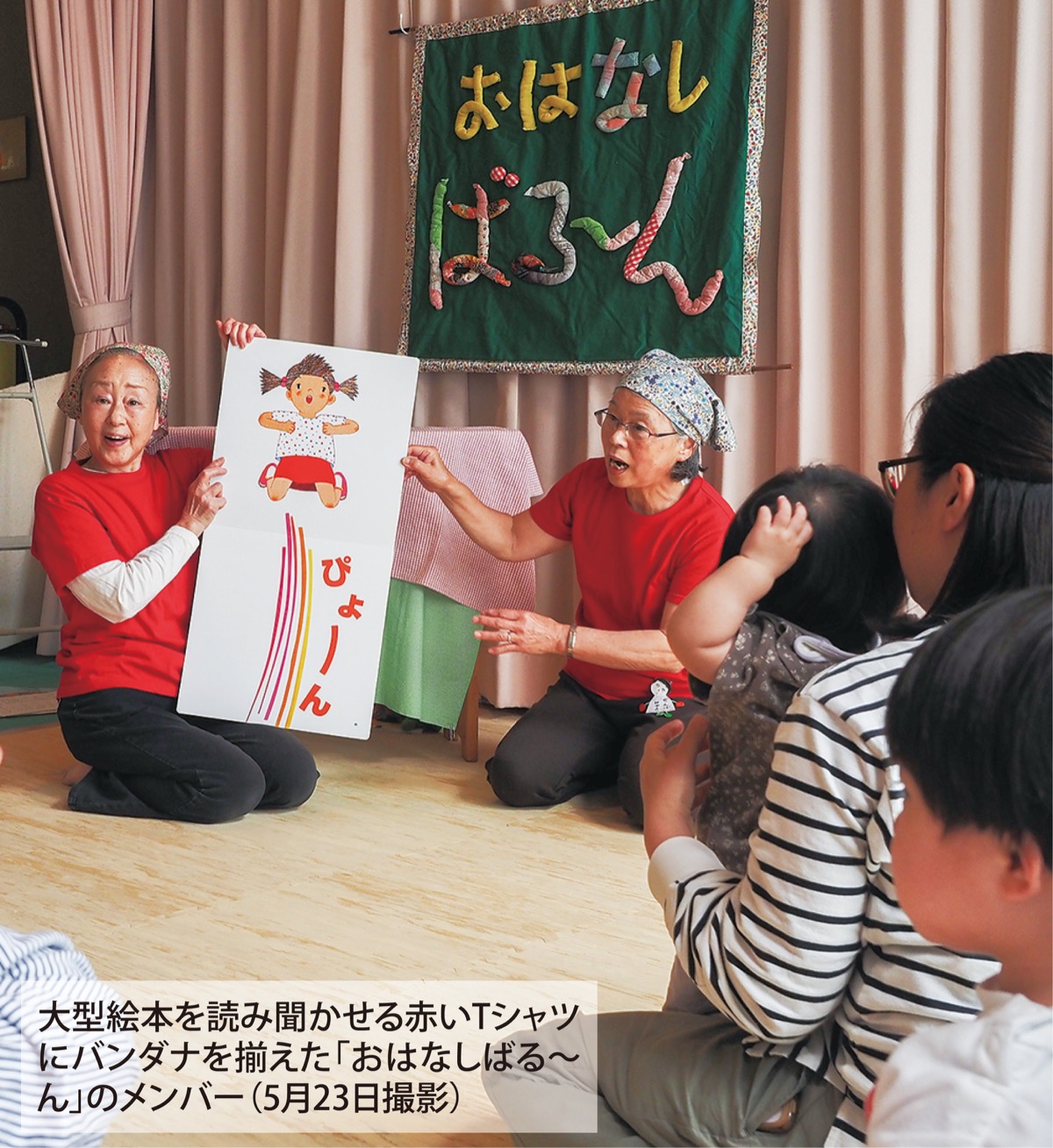 市内の小学校、保育園、幼稚園、高齢者施設など、出前おはなし会も積極的に行われているほか、月1回の勉強会も熱心に開催し「推し絵本」を紹介し合っているという。おすすめ本の紹介も新たな取り組み、「子育ての力になる3冊」を図書館で展示している。守田共同代表は「親子がほっとできる場になっていればうれしい」と笑顔で話した。