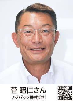 商工会の広報紙の編集長を務めるなど多彩な一面も。フジパック株式会社。第43代会長。57歳。