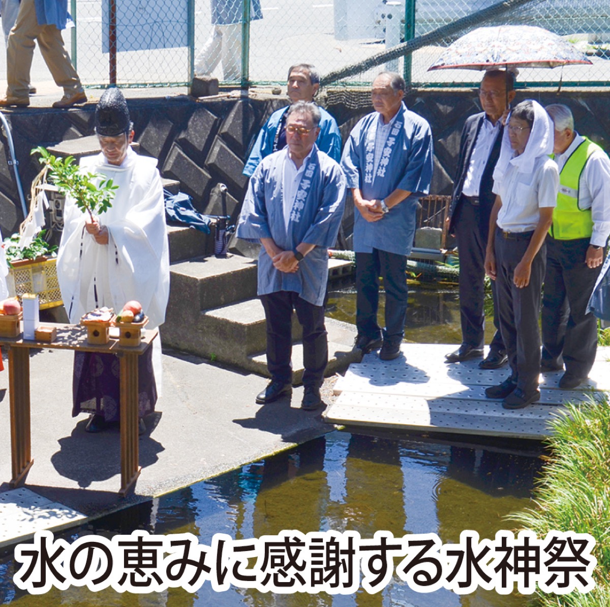 夏越大祓の後、同地区内で200年以上の歴史があるとされる湧水池に移動。水神祭が行われ、玉串を奉納するなど、水の恵みに対する感謝が捧げられた。