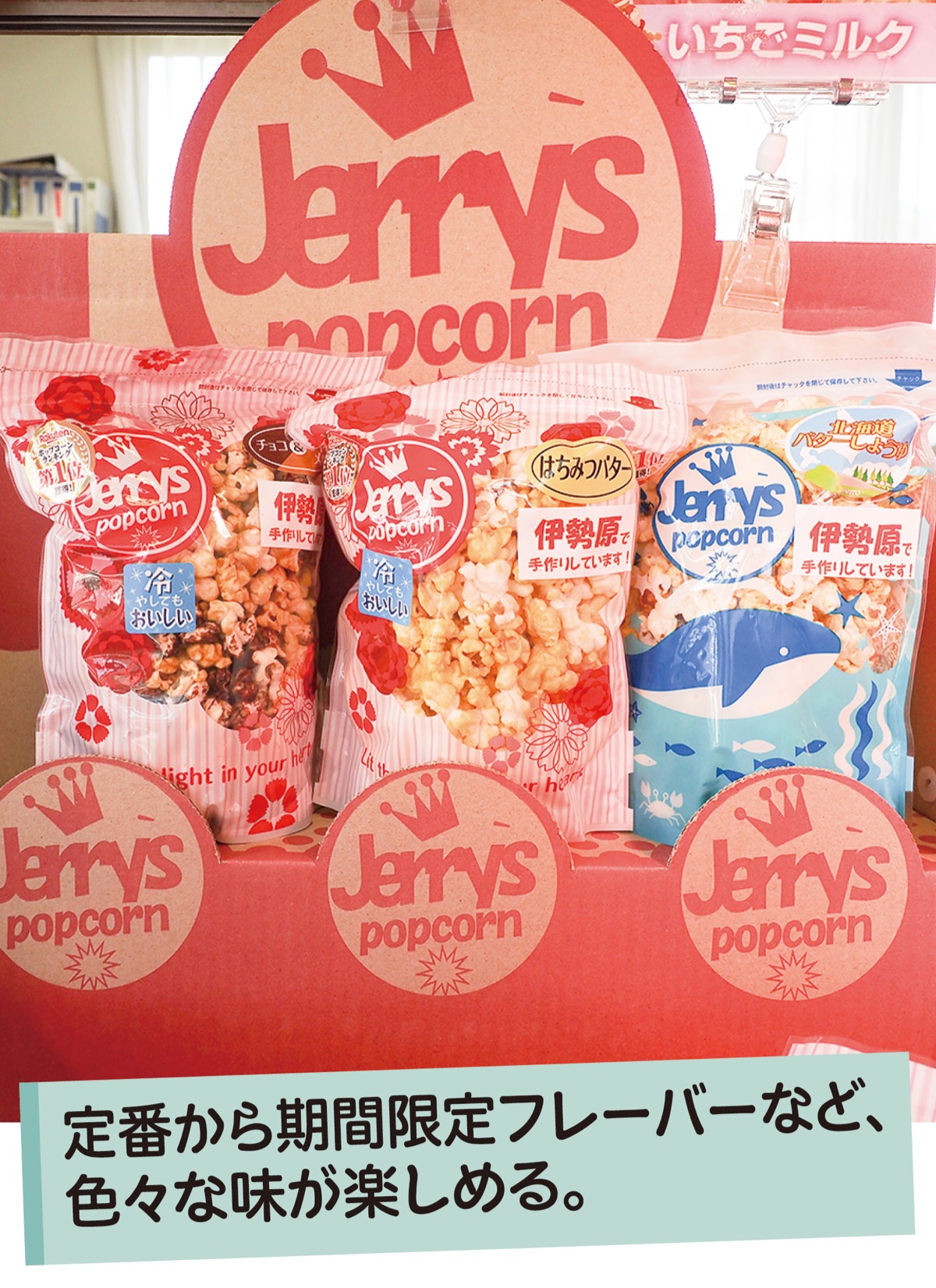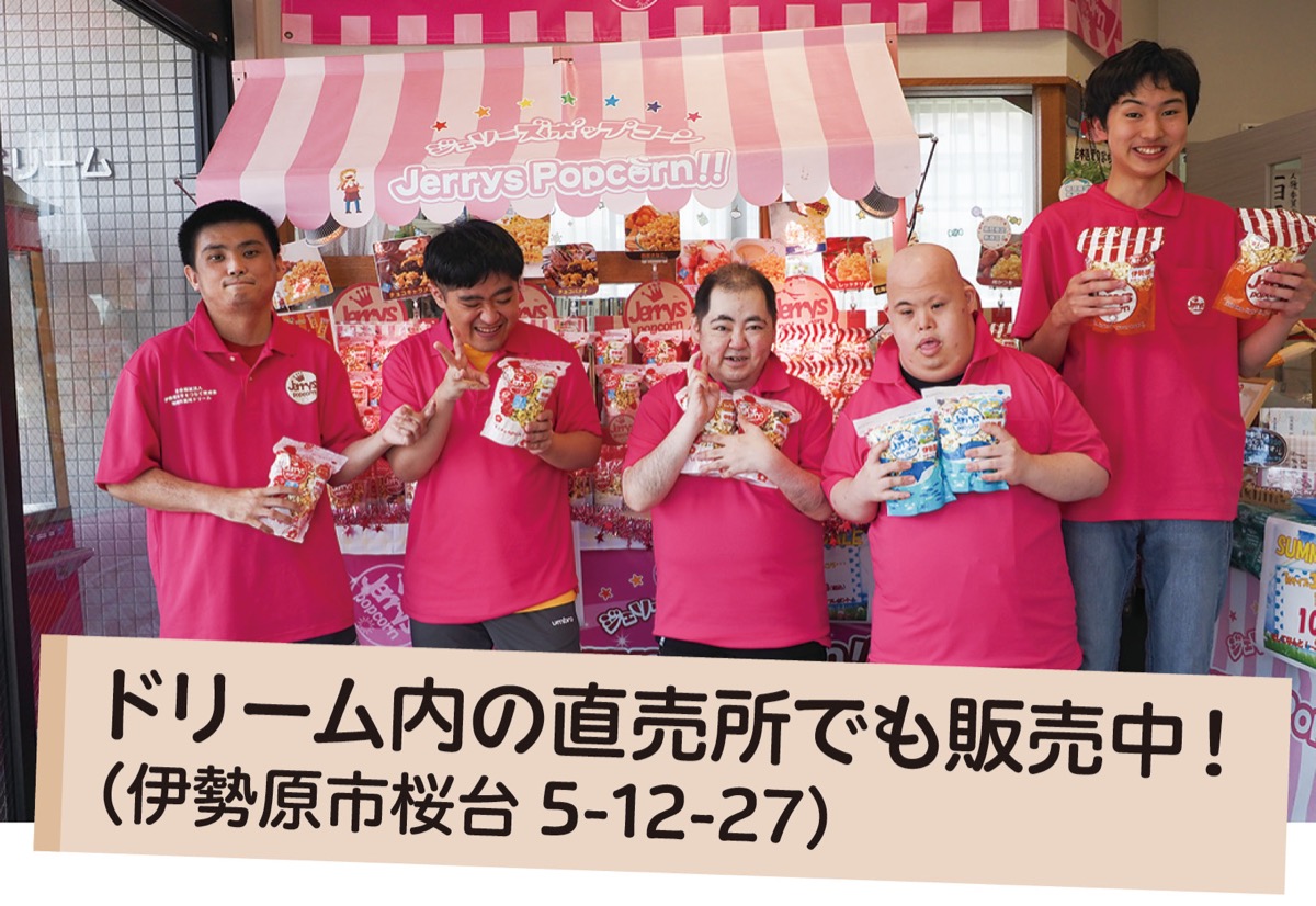 伊勢原市内で見かけるカラフルで可愛らしいパッケージの「ジェリーズポップコーン」。インスタグラムでも話題のこの商品は、市内にある「地域作業所ドリーム」で作られている。