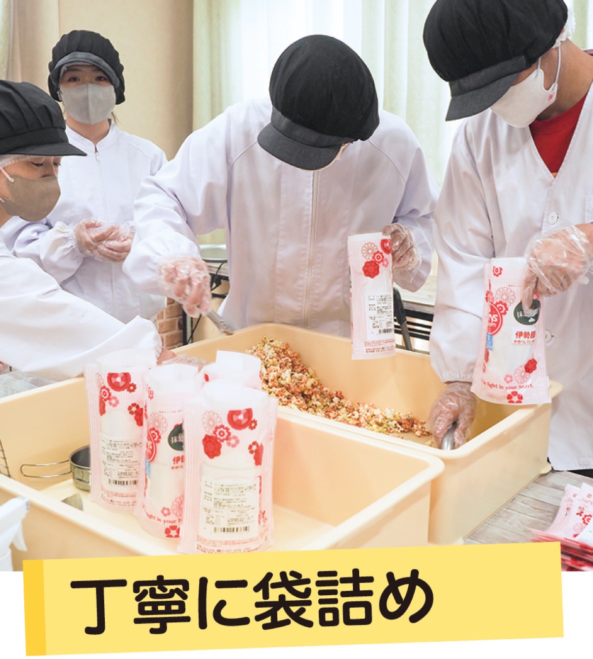 ポップコーン作りは、特別な技術や道具を必要とせず、障がいを持つ人でも、安心して作業に参加できるのが魅力。利用者が調理から袋詰め、袋のシール貼りなど全ての作業を行っている。「ひとり一人が丁寧に、何より楽しく作っています」と施設長の長尾拓哉さん。大切にしているのは「商品として買ってもらう」こと。まず「美味しい」と感じてもらい、その後に「どこが作っているんだろう」と知ってもらうのが理想だという。