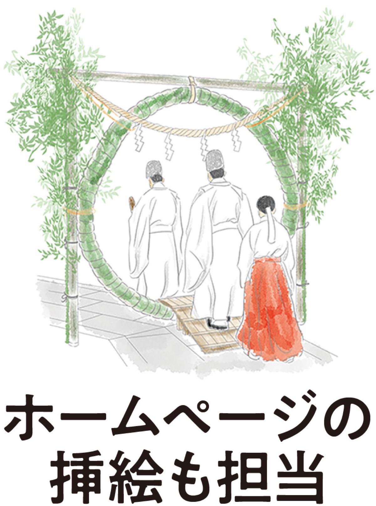 幼少の頃から絵を描くことが好きだった伊澤さんは、神社のホームページの挿絵やポスター、SNSでの情報発信も担当。彼女の手描きのイラストが、神社全体の雰囲気を柔らかくしている。8月末までは「夏詣」をテーマにした金魚のデザインが授与されており、秋には新たなデザインが提供される予定だ。