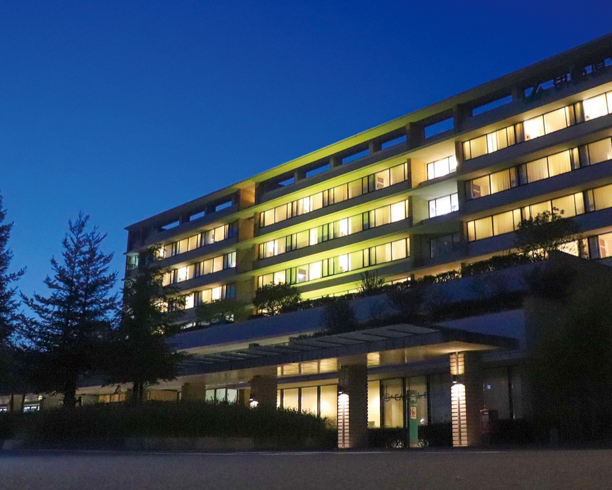 伊勢原協同病院の外観が9月17日、ゴールド色にライトアップされた。