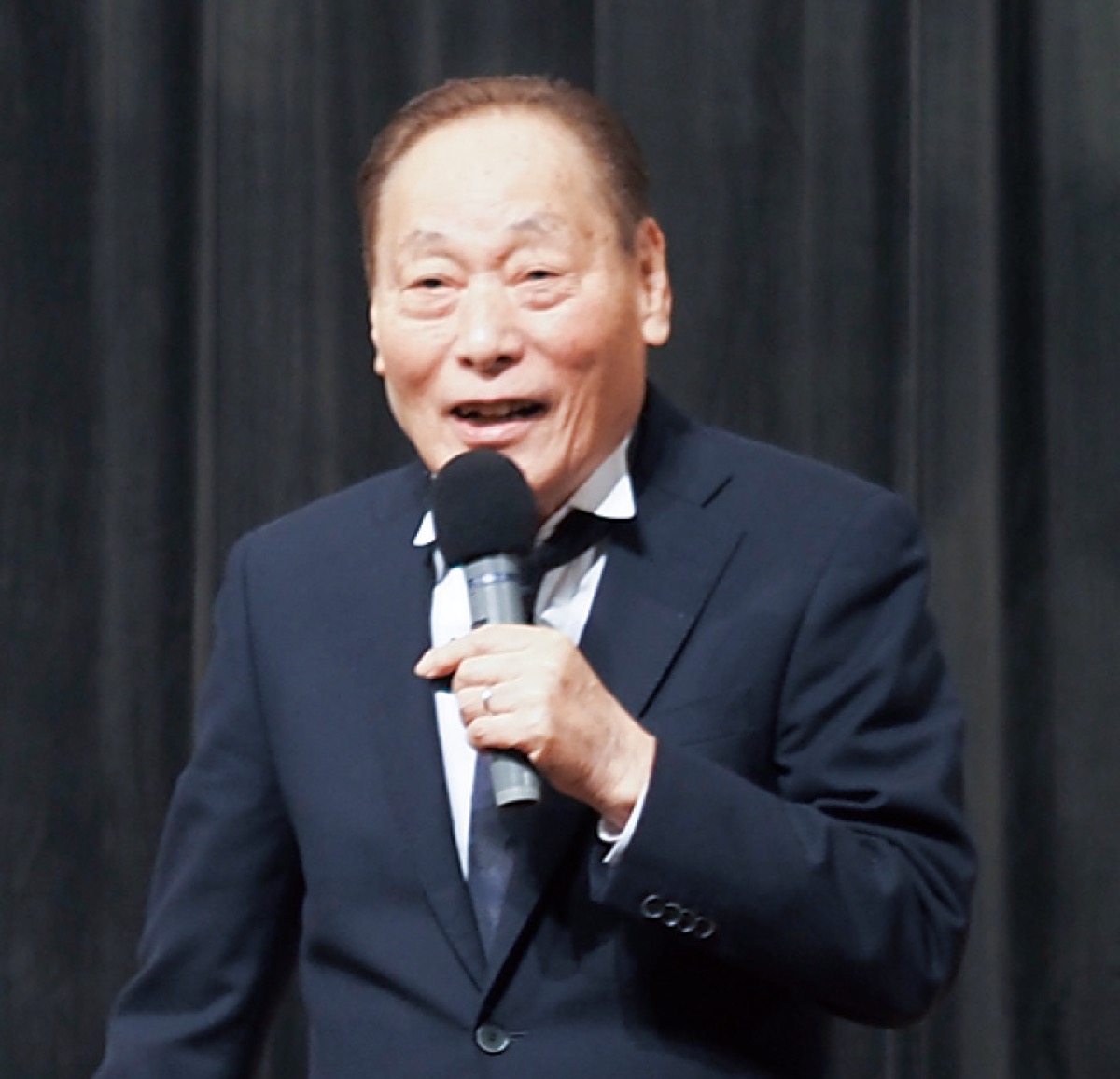 式典に続き、第二部として記念講演会が開催され、「突撃!隣の晩ごはん」でもお馴染みの落語家・タレントのヨネスケ氏(桂米助氏)が「元気と笑いのある人生」をテーマに登壇した。